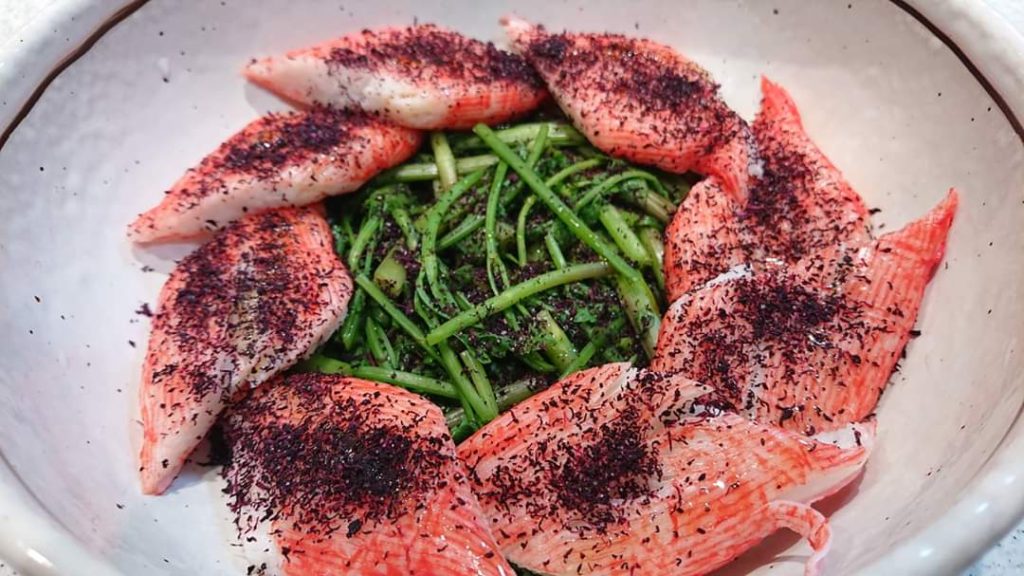 AGEレス健康料理「セリとカニカマのゆかり和え」