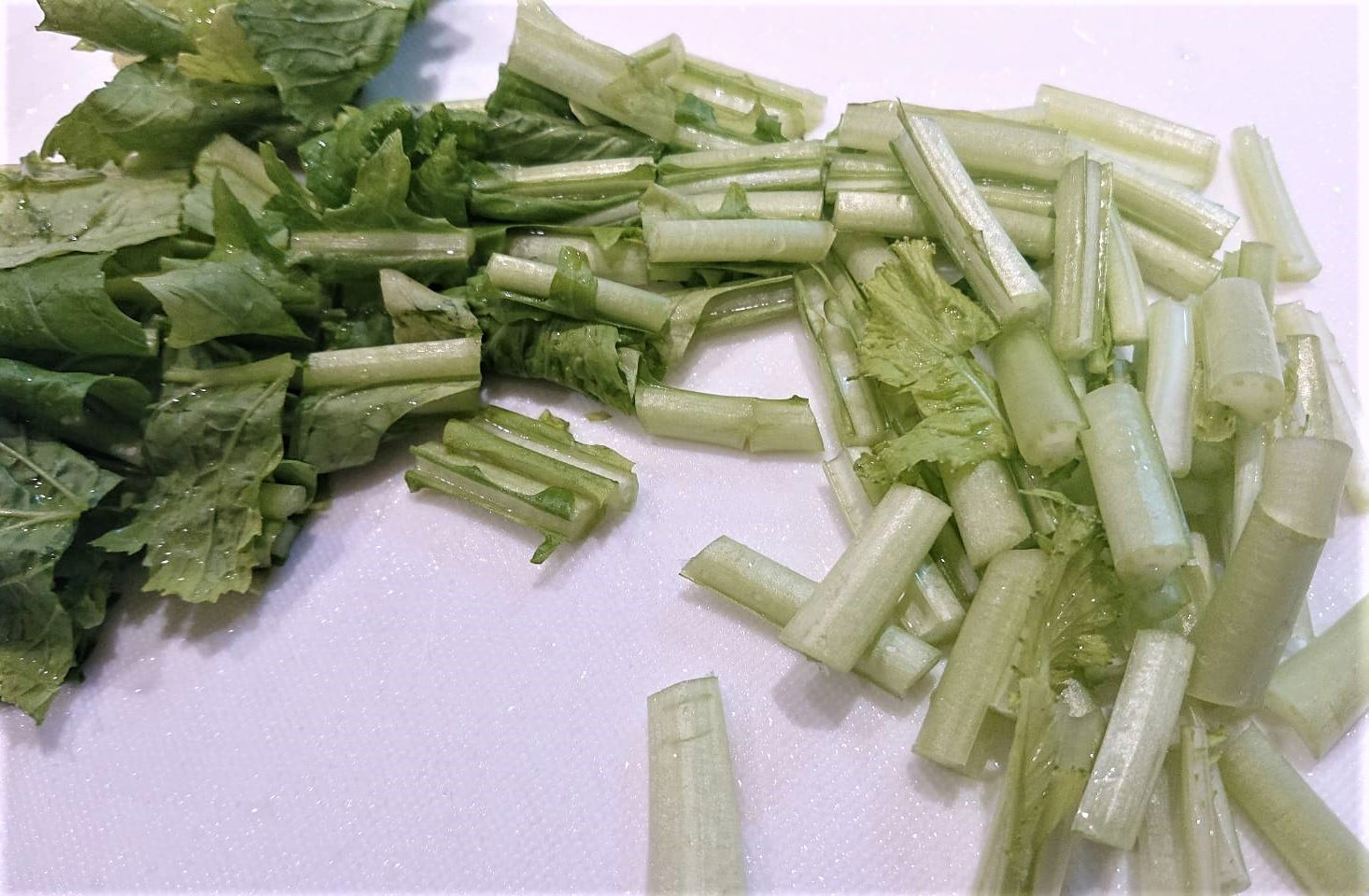 根はいちょう切り(皮は気になる方はむいてください)、葉は2~3センチくらいに切ります。