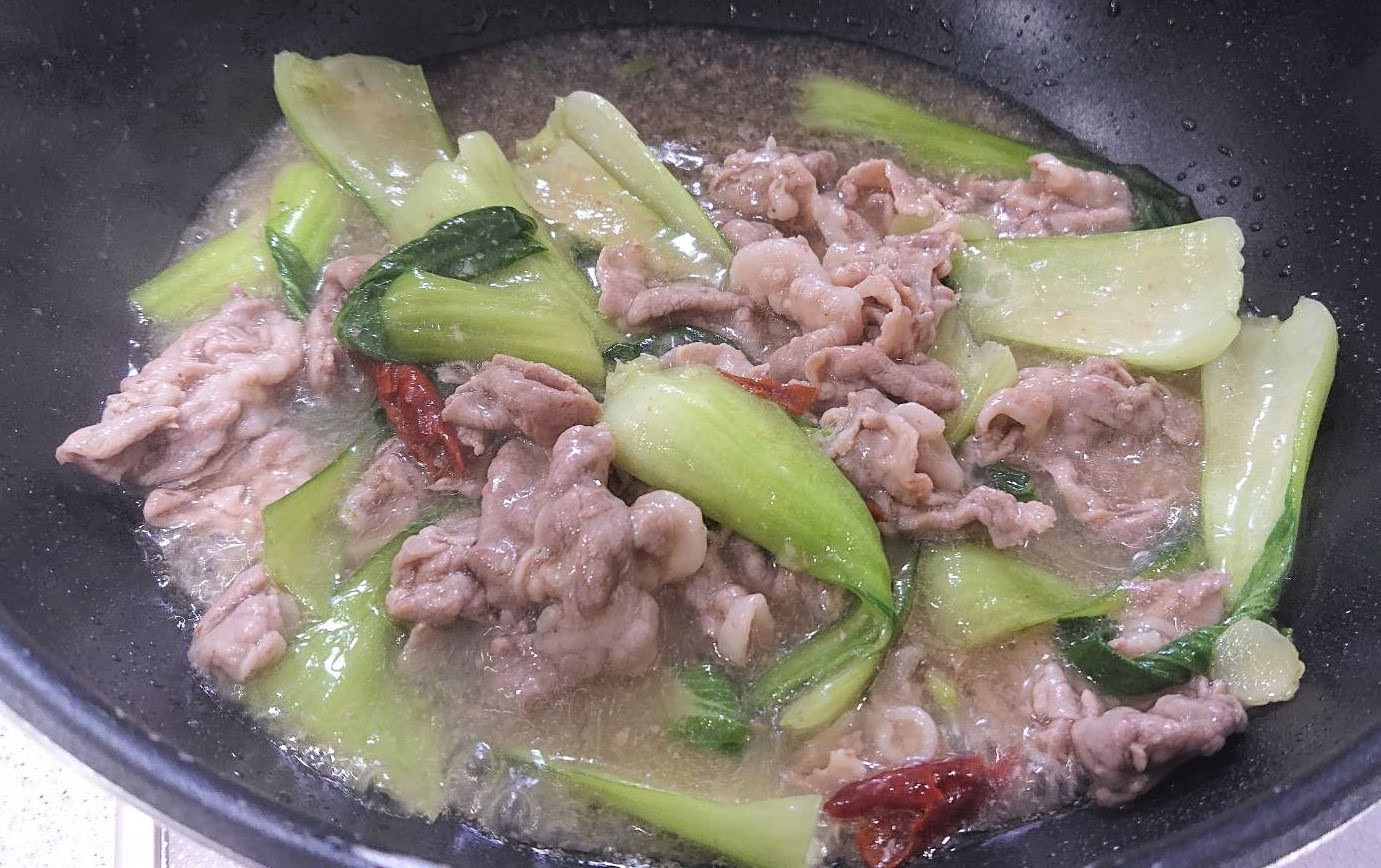 「青菜と豚肩ロースの中華ピリ辛煮」