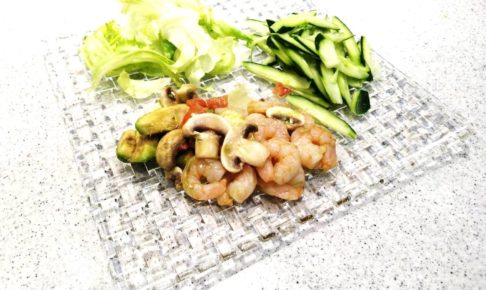 マッシュルームは縦1/4、オクラは半分に斜め切りでスタンバイです。