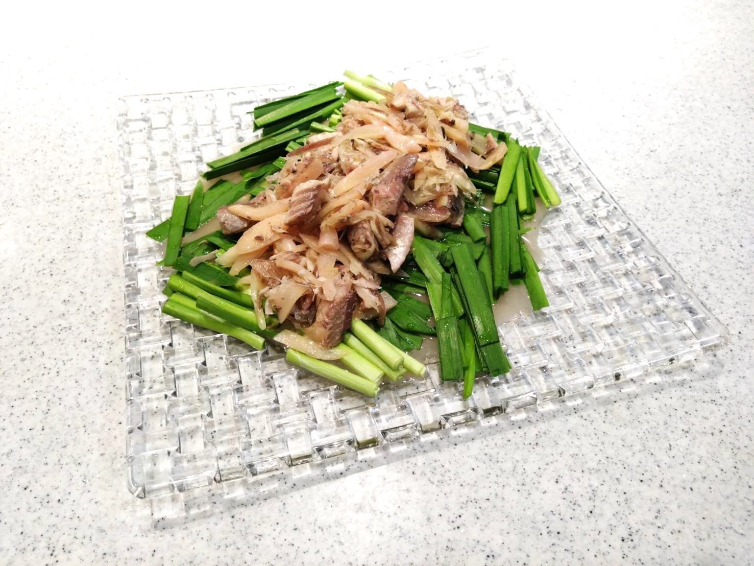味が決まったら、お皿に敷き詰めたニラにかけて完成です。