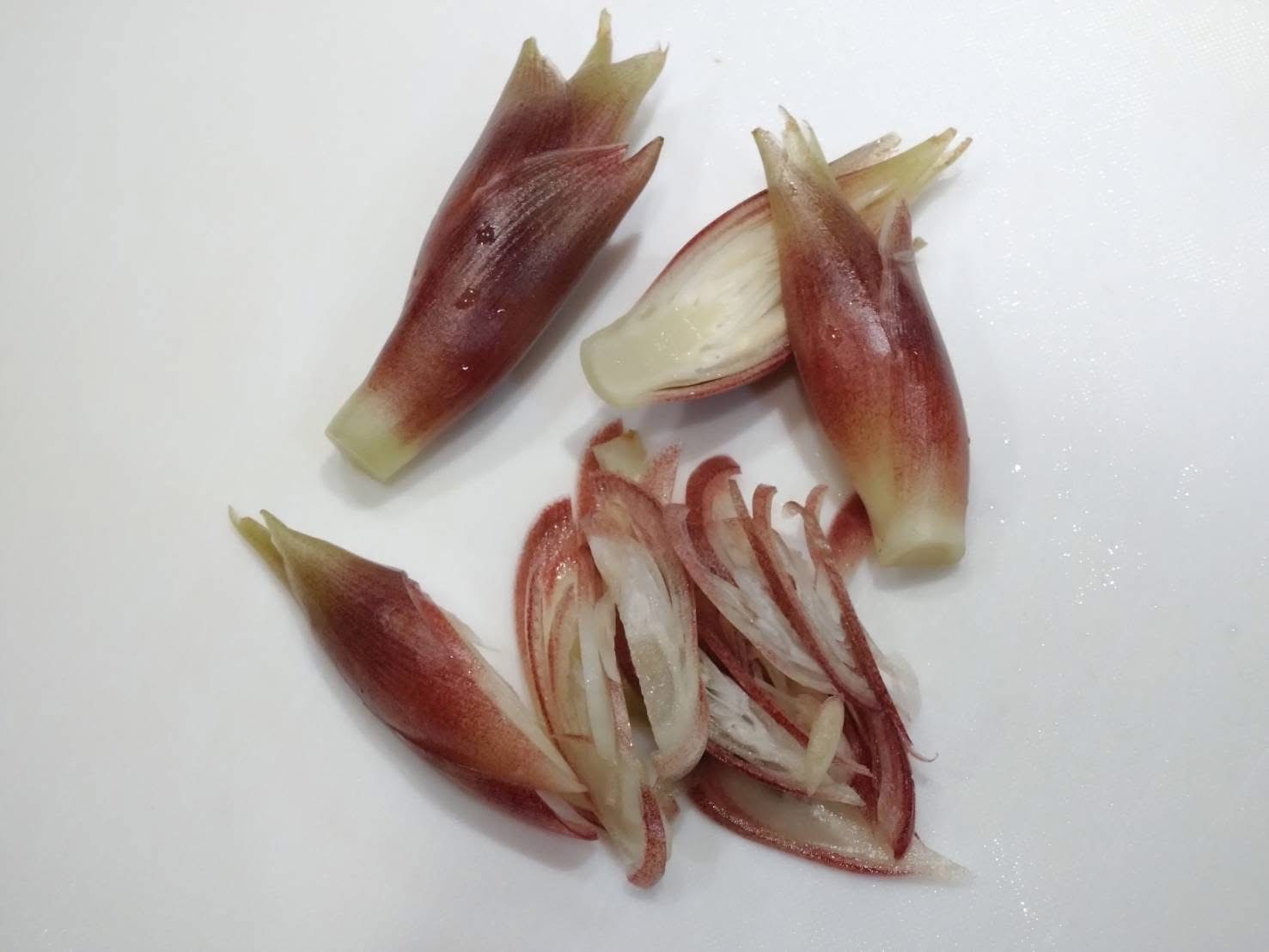 新生姜もミョウガのサイズに合わせて太いものは縦半分、細いものはそのままで斜め薄切り。