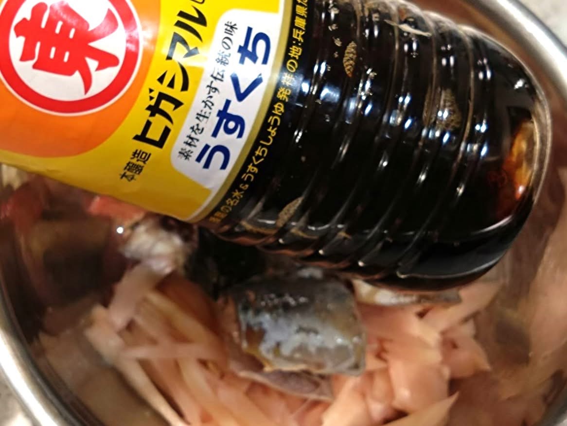 薄口醤油 サバ缶と新生姜のバランスを見て味見をしながら適量