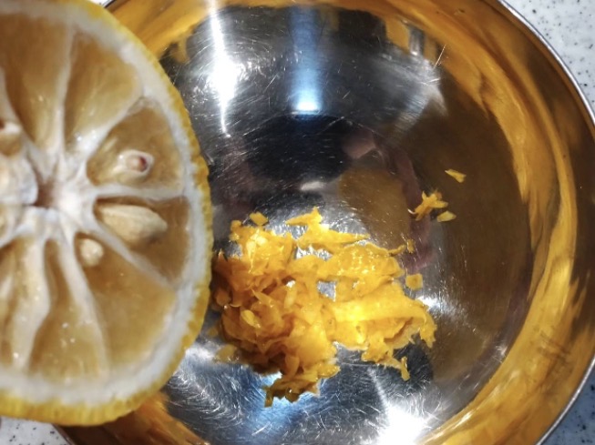 柚子1/2、皮の黄色いところをみじん切り、果汁と合わせて馴染ませて、
