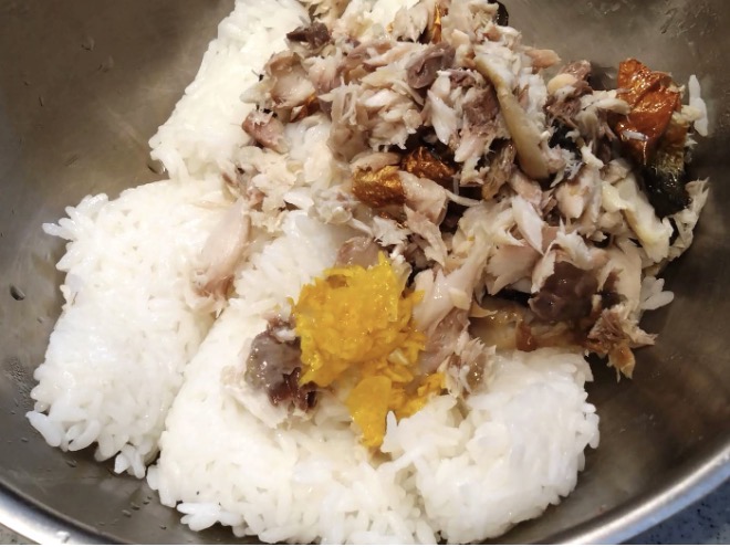 《焼き塩サバと柚子の香りの混ぜご飯》