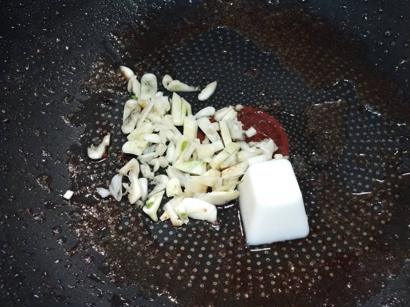 ニンニクの粗みじん切りを、お肉を焼いたフライパンをそのまま使って、ナチュレオコールドスタート弱火で香出し。