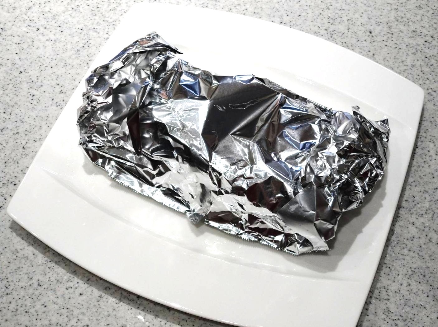 ホイル包み仕上げをすると、ホイルに肉汁が滲み出ますが、これも大事な調味料。