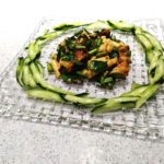馴染んだら火を止めて、梅ごのみと紅ショウガを合わせて出来上がり。